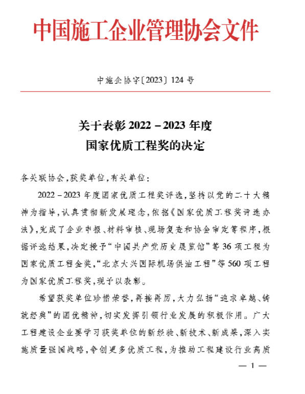 近日,中國施工企業(yè)管理協(xié)會發(fā)布2022-2023年國家優(yōu)質工程獎名單,我公司參建的江海大道東延(綜藝集團東-揚子江路)工程登榜。
